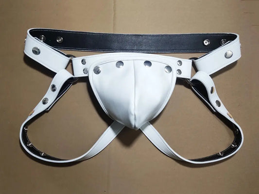 LEATHER JOCKSTRAP - SILVER AND BLACK